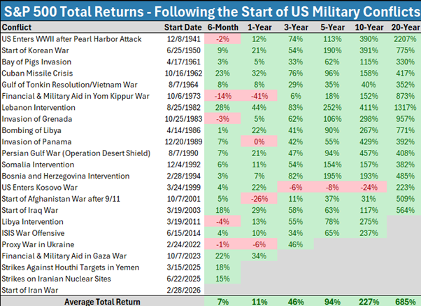 Investors are asking what typically happens in the stock market after the start of military conflicts.